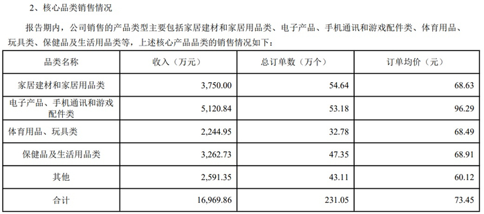 在核心品类销售方面,报告期内,公司销售的产品类型主要包括家居建材和家居用品类、电子产品、手机通讯和游戏配件类、体育用品、玩具类、保健品及生活用品类等。2023年上半年度,公司跨境电商业务累计采购7,434.54万元,其中向前五名供应商累计采购1,451.07,万元。
