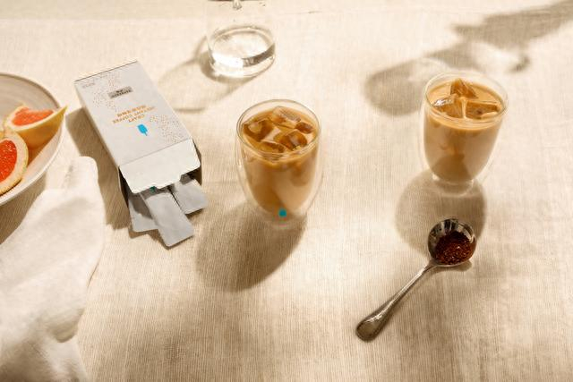 使用蓝瓶精品即溶咖啡(浓缩)可以制作多款冷热饮咖啡,经过蓝瓶咖啡品控专家的感官盲测之后,用低温鲜奶制作的冰拿铁是最优推荐。取一条蓝瓶精品即溶咖啡(浓缩)溶于20毫升热水,再加入适量冰块和150-170毫升鲜牛奶,搅拌均匀,即可享用这杯可与蓝瓶门店的经典冰拿铁(蓝瓶门店最畅销的饮品之一)媲美的即溶冰拿铁。