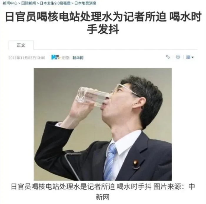 早在2011年11月,为了证明福岛核泄漏没大家想得那么严重,有个叫园田康博的日本官员,就当着记者的面,喝了一口处理过的核废水。