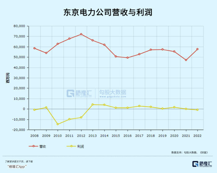 你看,东京电力2022年的营收接近600亿美元,资产一千多亿美元。利润,好吧利润是负的。