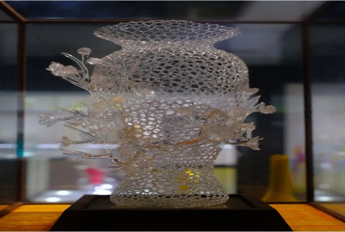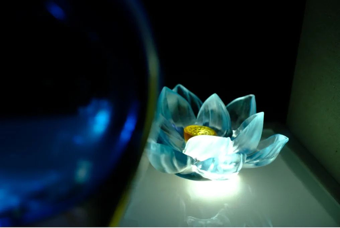 值得一提的是,在大约450℃至550℃的退温炉内,花瓶需要进行为期3天的退温处理,其目的是消除应力、以防炸裂。但在此过程中,受原材料、熔化温度及杂质等各种因素的影响,琉璃料质不够稳定的情况依然会存在,也由此会降低热成型花瓶的成品率。成功完成退温处理的花瓶,通过最后一步的打磨加工,方可形成一件光泽晶莹、温润凝重的艺术品,展示着琉璃艺术固有的自信与光彩。