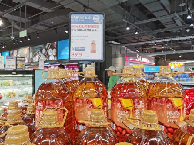 在线下门店,不少“移山价”产品均被摆放在显眼处,方便消费者购买。例如:盒马榴莲千层蛋糕,39.9元/470克;盒马压榨一级花生油,89.9元/5L;秘鲁超大蓝莓,19.9元/125克(18mm果径);佳沛新西兰阳光金果plus,66元/6粒装(单果175克);冰鲜猪肋排条,39.9元/700克;锦绣黄桃,22.9元/1.2公斤(6个装);无抗鲜鸡蛋,22.9元/1.59公斤(30枚)。