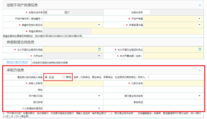 温馨提示:如果您选择代开普票,承租方可以选择代开给“企业”或“其他”,如果您选择代开专票,承租方只能是“企业”。