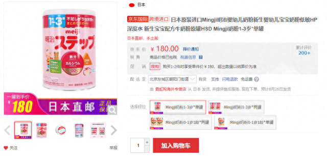 目前仅有两个商家在京东售卖日本奶粉,这两个商家分别是:霓虹购海外专营店和鼎峰海外官方旗舰店。他们售卖的这两款产品分别是这样的:
