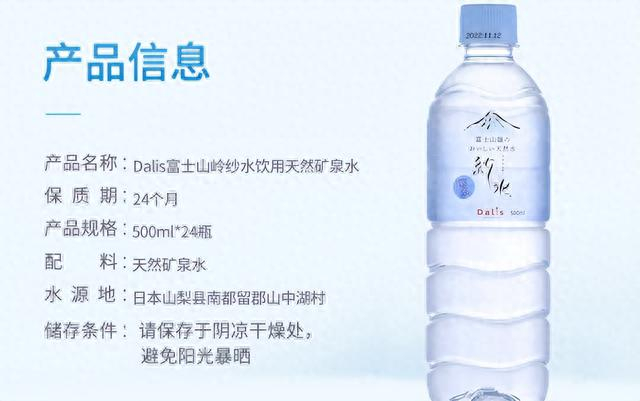 在天猫,食悟还搜到一些产自日本的矿泉水:富士山,纱水,Dalis大雪惠,财宝,森之水,胜利等矿泉水品牌。