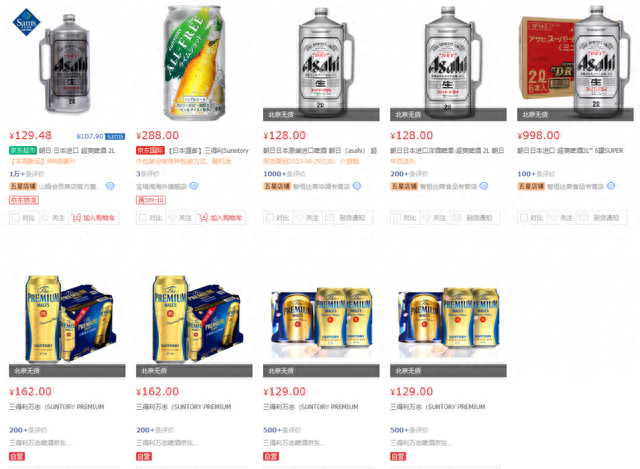日本部分啤酒品牌在中国还是卖得挺好的,比如朝日、麒麟一番榨等品牌,在电商上和线下餐饮店都随处可见。