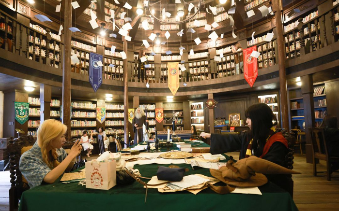外滩五号秉持着一店一风格的招牌特色,首次落户南浔古镇,利用粮仓改造成魔法世界,打造沉浸式体验空间,吸引不少探店博主自行打卡,开业首日订单就达数百单。“在小红书上刷到了很多博主穿着霍格沃茨学院服来拍照,很好看,我们也特意开车过来打卡。”《哈利波特》系列电影的粉丝吴宇特意和朋友从江苏自驾过来,就为了在魔法世界风格的店里留下几张照片,“打卡,是当代年轻人旅游很大的动力来源。”