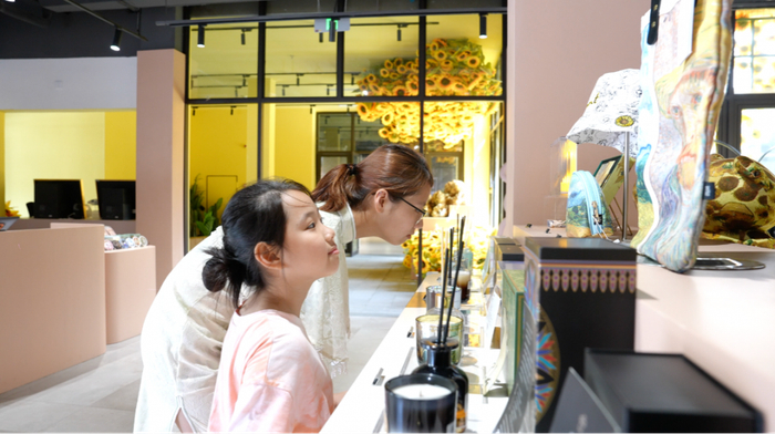 在BBC Earth亚洲首家线下实体店——Earth PuPu咖啡店里,游客们正排队与熊猫玩偶打卡合照;隔壁的Museum&More全省首家线下门店也人来人往,小朋友和家长正在挑选购买全球多个世界博物馆的文创衍生商品……