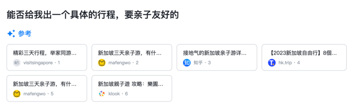 上图“新加坡好玩吗”的答案中,天工AI搜索便列出了6个信息溯源点,给出的完整回答中,每一个信息点都关联到了相应的信息溯源点,确保了信息的真实、准确和有效。天工AI搜索的双重技术保障,让鱼龙混杂的信息变得可追溯可信赖。