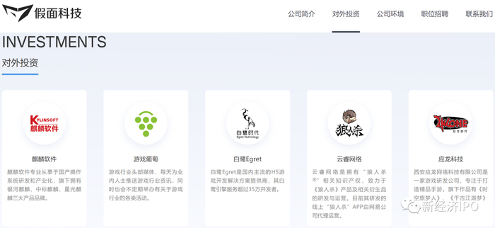 假面科技官网披露的对外投资项目中,“乡遇”并不在投资产品之列。