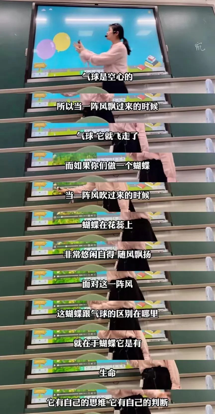 老师用“做有生命、会思考的蝴蝶,不做随风而飞的气球”引导小学生理解“网络烂梗”。