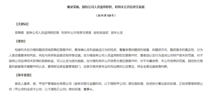 被告人桑某,男,甲资产管理股份有限公司(国有非银行金融机构,以下简称甲公司)原总裁助理、投资投行事业部总经理,乙投资管理有限公司(甲公司的全资子公司,以下简称乙公司)原总经理、董事长。