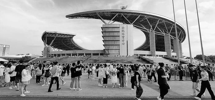 7月22日,合肥体育中心,歌迷等待进场。(资料图)