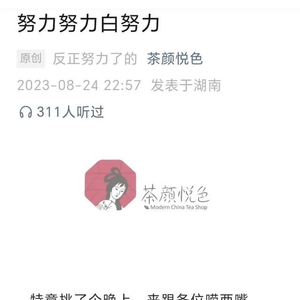 8月24日晚间,茶饮品牌茶颜悦色公众号发布的一篇名为《努力努力白努力》的推文引发广大网友讨论。部分网友表示,非常不喜欢该文章标题传播的消极情绪。