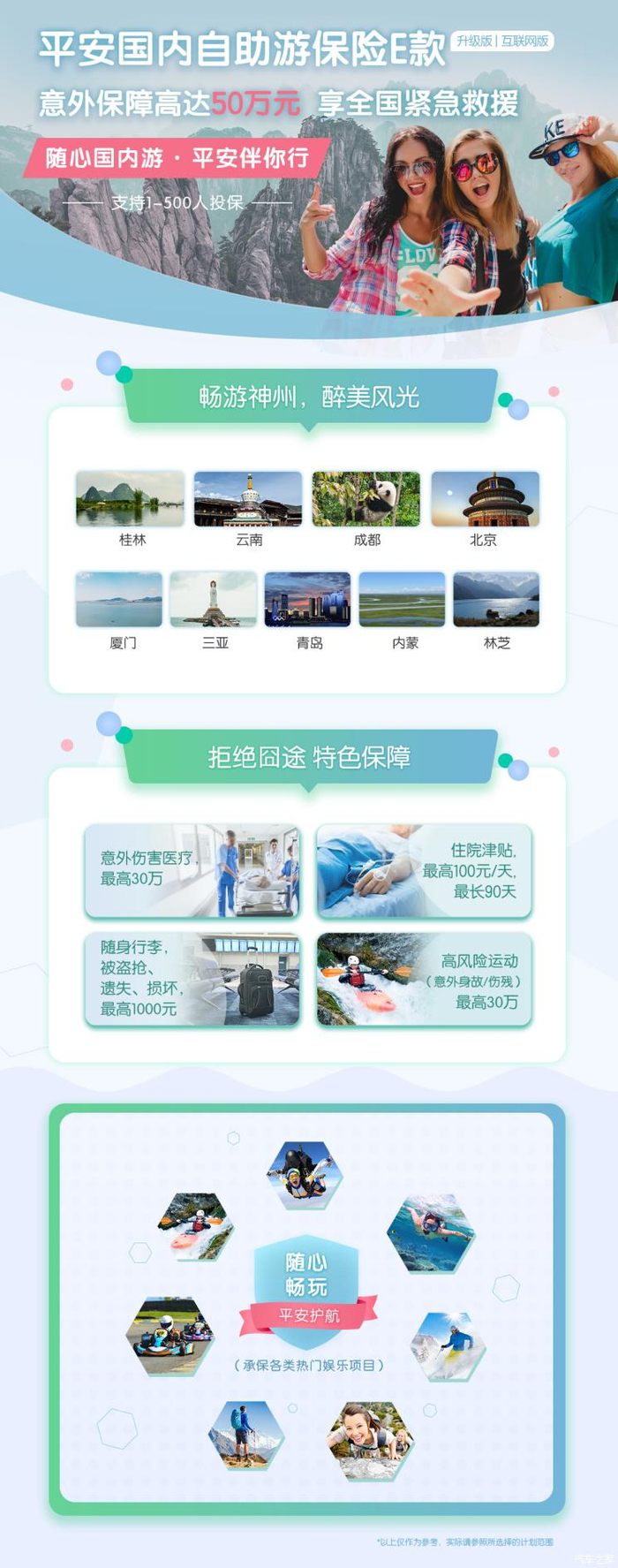 除了车的保险以外,人也可以买一点短期的旅游险,1-7天的险种十分便宜,几块钱都能有不错的保障,购买也很方便,支付宝和微信都能购买。平安保险也有针对的自助游保险,大家长假出行不妨为自己和家人买多一份保障。