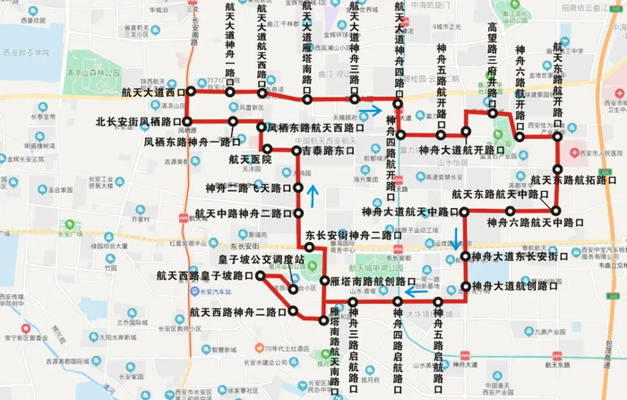 新增站点4个:航天西路皇子坡路口、航天西路神舟二路口、雁塔南路航天南路口、航天东路航天中路口。