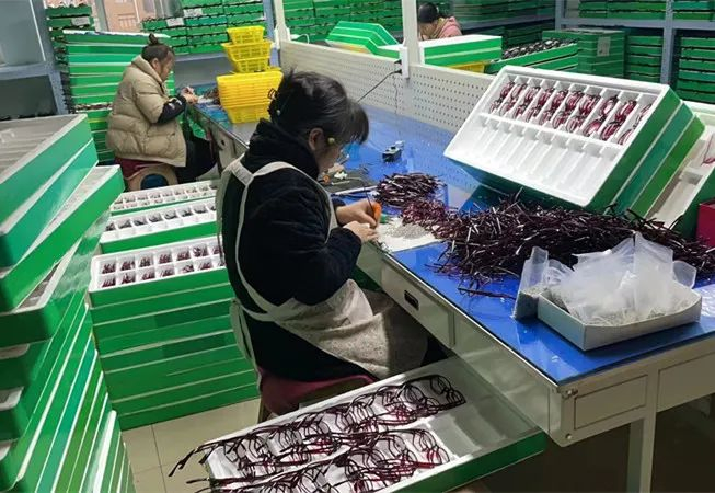 杜桥镇超过五分之一的人都在眼镜行业工作,金炜烽见证了这里如何成为今天拥有一万多家眼镜制造与加工厂的“中国眼镜之乡”。他的父辈从销售眼镜起家,上世纪70年代,当时的人们会把眼镜塞进手提包,踏上开往外地的运货车。后来,一间间小作坊生根发芽扩成工厂店面,在杜桥镇上差不多每隔100米就是一家。