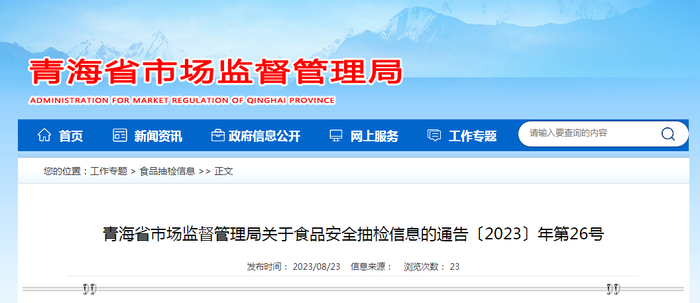 青海省市场监督管理局关于食品安全抽检信息的通告(〔2023〕年第26号)