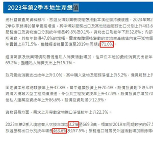 2023年上半年,澳门本地生产总值同比上升71.5%,整体经济总量回复至2019年同期的71.0%。