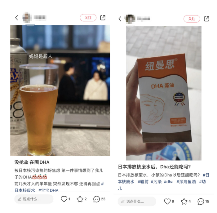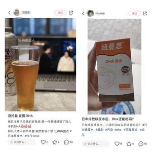 在社交平台上,“全网都在抢盐和DHA”、“大人囤盐,小孩抢DHA”、“没囤盐,在给我儿子囤DHA”……诸如此类的分享和焦虑情绪逐步蔓延。还有卖家在制造恐慌情绪,宣称“已经有顾客囤货一年的了,全球进口DHA生产将会告急,届时物价会更贵。”