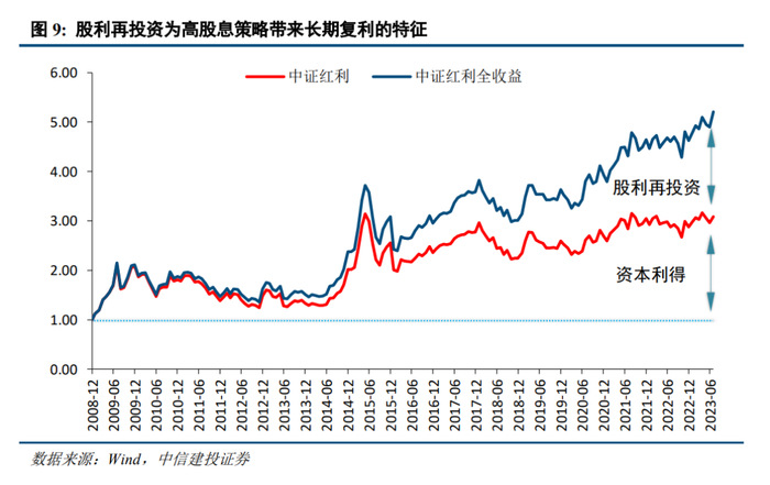 去年2月发布的策略专题《重估避风港——高股息策略的战术机会》中,我们指出:在理论层面,根据股利贴现模型,股票价格与股票红利成正比。高股息带来的高额再投资收益,是其高股息策略长期有效的基础。