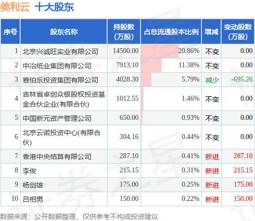 根据美利云2023年中报公布的十大股东详情如下: