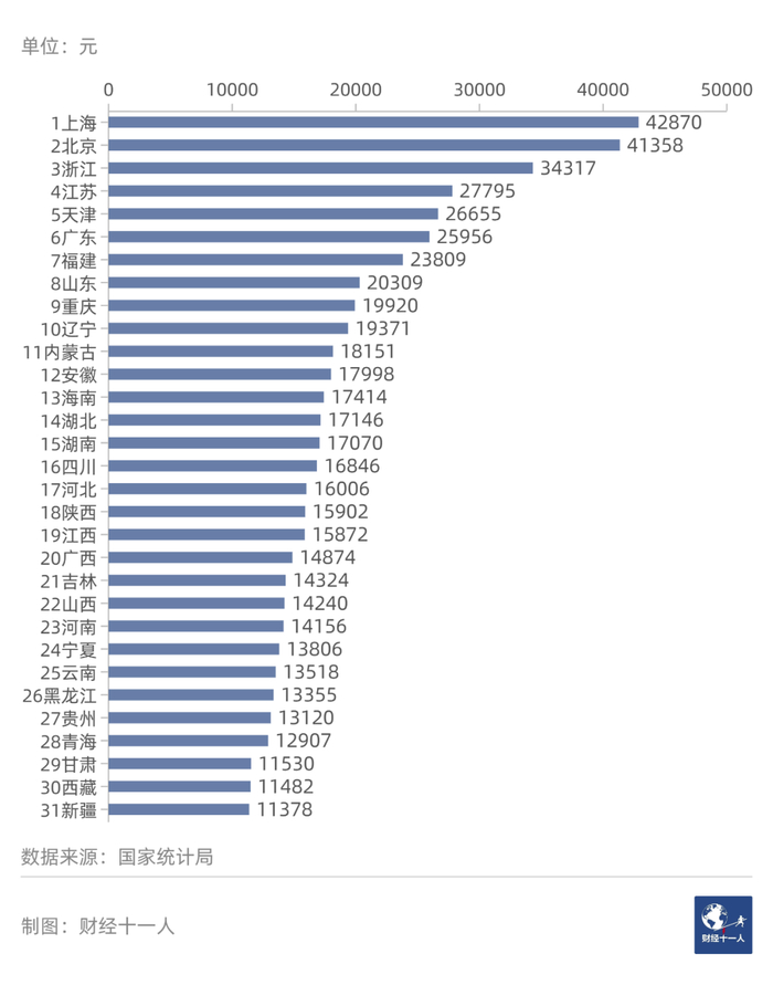 按照中国14亿人口来算,2023上半年,中国居民人均存款达到了9.5万元。但是,各省份居民的人均存款差异很大。我们先看看哪个省份的人均存款余额最高。
