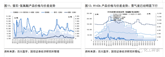 事项国信化工观点:二季度业绩环比显著增长,巩固制冷剂行业地位,加快产业链延伸布局。公司公布《2023年半年度报告》:2023年上半年,受主要产品氟制冷剂、氟发泡剂、氟化氢销量同比下降;氟制冷剂、氟化氢产品价格同比下降等影响,公司实现营业收入17.36亿元(同比-32.41%);归母净利润1.30亿元(同比-62.30%)。公司负债率11.71%,投资收益-257.29万元,财务费用-7890.06万元,研发费用1823万元(同比+7.76%),毛利率12.19%。其中2023Q2单季度,公司实现营业收入9.59亿元(同比-30.96%)、归母净利润1.10亿元(同比-27.34%、环比+450%)。近三年来,在三代制冷剂仍处于周期底部且近期HFCs 制冷剂价格延续回落趋势的背景下,公司仍然实现了平稳有序的生产经营;进一步巩固了制冷剂行业地位,并持续加快产业链延伸布局。氟发泡剂价格显著提升,静待三代制冷剂周期上行。2023H1原材料采购均价较同期显著下滑,其中硫酸、氯仿、二氯甲烷、四氯乙烯、三氯乙烯、偏氯乙烯采够均价分别同比-79.28%、-46.52%、-38.50%、-41.63%、-29.83%、-42.48%。在原材料的弱支撑下公司部分主营产品价格也有所下调:2023H1,氟制冷剂、氟化氢均价分别为21,447、7,446元/吨,分别同比-22.30%、-9.78%。发泡剂方面,受2023年度氟发泡剂配额加速削减等的影响,国内厂家货源相对紧张,下游需求也相对稳定,产品价格走势平稳。2023H1,公司实现氟发泡剂的产量、销量分别8,265、4,483吨,均价为22,778元/吨,销量同比减少47.43%,价格则上涨了26.50%。制冷剂方面,三代制冷剂价格仍处于底部,静待周期上行。向氟制冷剂、氟精细化学品、氟聚合物方向进行产业链一体化投资布局。近年来,公司积极布局新材料、新能源等业务领域,并向氟化工下游高附加值领域延伸。目前,公司已布局的项目有:年产3000吨(一期为500吨)LiFSI、5000吨FEP及 5000吨PVDF、6000吨六氟磷酸锂及100吨高纯五氟化磷(PF5)、1200吨R116、2万吨高纯电子级氢氟酸等项目。