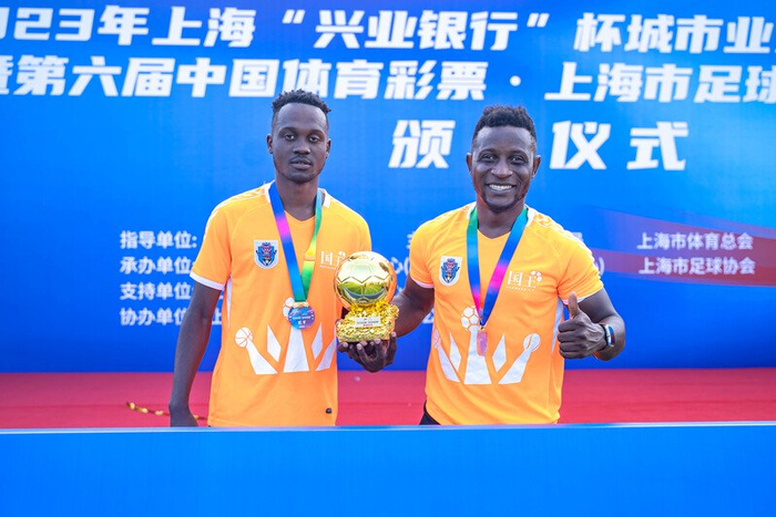 颁奖现场,两名非洲“外援”的健硕身材、强壮身体,引发关注。上海国王队领队刘晟介绍,他们也是国王青训的兼职教练,“我们是同事,平时在俱乐部带教小孩基本动作,这次上冠联赛,教练们展开内部选拔,一周合练两次。和不少球队依靠高额出场费、奖金吸引退役职业球员不同,我们更多追求足球纯粹的快乐。团结、友谊、快乐,是大家在一起征战最大的收获。”