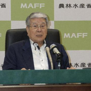 日本农林水产大臣野村哲郎25日在记者会上发言,《每日新闻》报道配图
