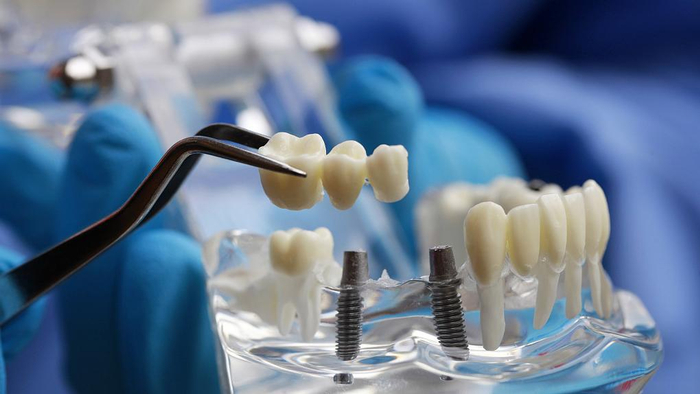 种植技术是采用仿生学的方法,将钛金属制成的外形类似天然牙根的种植体,通过手术植入到牙床内,待种植体与骨结合后,形成人工牙根;然后在人工牙根上安装人工牙冠,来修复缺失牙齿。