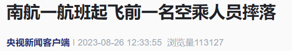 南航一空乘起飞前摔落,相关部门介入调查