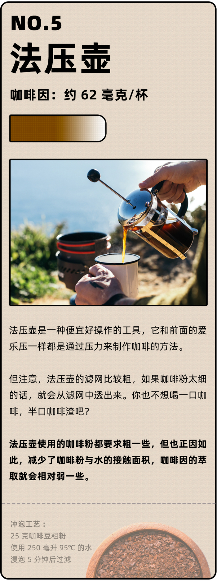 如果你并不需要大量的咖啡因,或者咖啡因耐受有限,那不如自己学着用【法压壶】压一杯咖啡试试,操作简单成本还低。