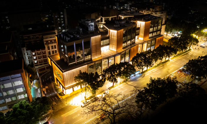 其3.5万㎡体量,以聚落式设计概念,契合周边城市尺度,充分尊重临近居民区的视觉需求,创造独树一帜的空间氛围感。