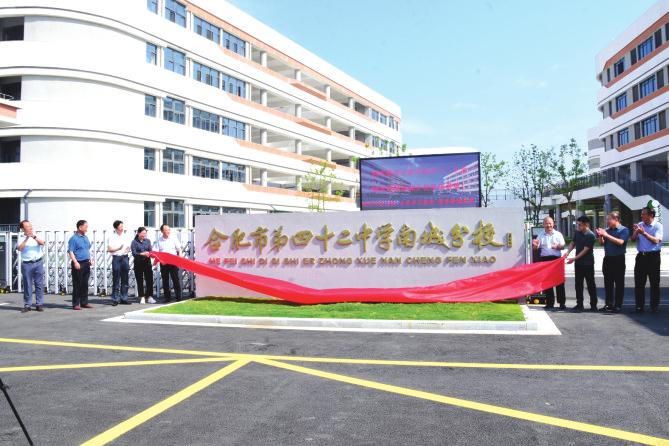 2023年8月21日上午,合肥市第四十二中学教育集团南城分校揭牌暨执行校长送任仪式在合庐产业新城举行。此次南城校区的正式揭牌办学标志着合肥四十二中教育集团在创新集团化办学模式上又迈出关键一步。