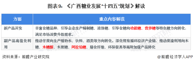 2022年1月,广西省发布《广西糖业发展“十四五”规划》,提出引导食糖向功能糖、营养糖等特色糖方向转化,鼓励蔗渣生产木糖醇、木聚糖、阿拉伯糖等产品。政策主要内容如下: