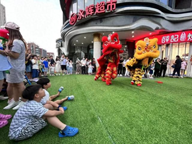 位于隆昌路586号的复旦软件园商场,是居民们十分熟悉的老牌购物场所。开市当晚,商场大门前锣鼓声声,居民们驻足观看舞龙舞狮,欢呼喝彩;而在青烟袅袅的摊前,“齐天大圣”正与顾客们开心互动,孩子们则追逐着小丑巡演的队列嬉戏玩闹。