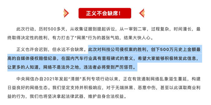 创纪录!汽车博主恶意中伤,法院终审判决:赔偿车企500万元