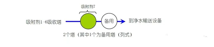 其后,废水先后经过吸附塔(吸附剂1-6)、处理塔(吸附剂7),相关吸附剂及去除元素类型如下所示:
