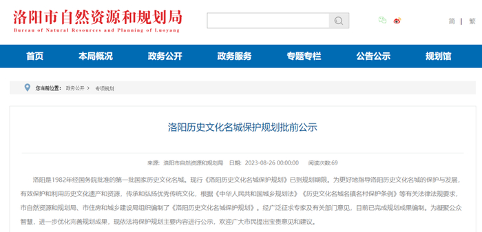《洛阳历史文化名城保护规划批前公示》