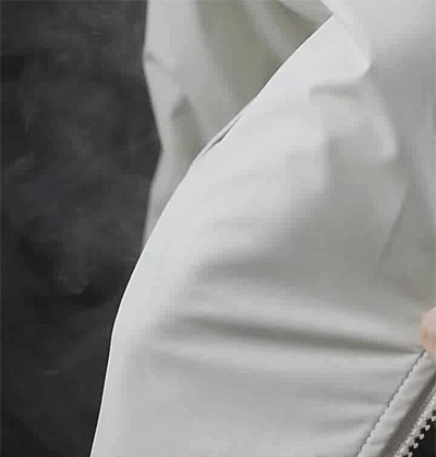 可以看到水立马顺着衣服往下滑,就像披了一件雨衣一样,里面的衣服一点没湿。