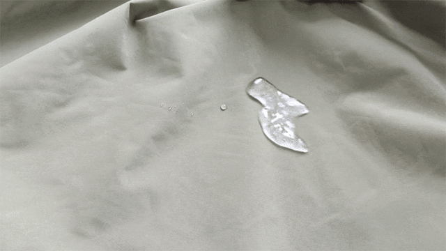 就像荷叶一样,会在表面形成斥水层,水泼洒上去会凝聚成珠,从衣物上滚落。