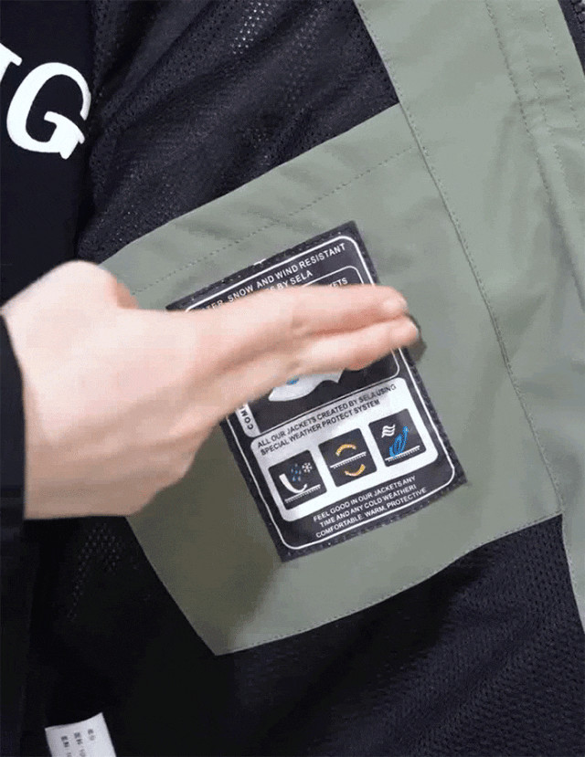 内里有功能标展示,彰显冲锋衣的强大性能。