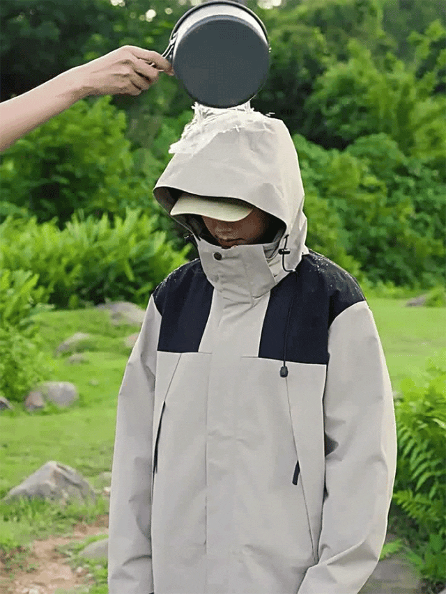 吉普冲锋衣的面料表层采用超高疏水涂层。