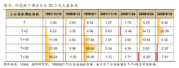 3)1998年6月12日,印花税由5‰下调到4‰,调整后首个交易日,沪指收盘小幅上涨2.65%。