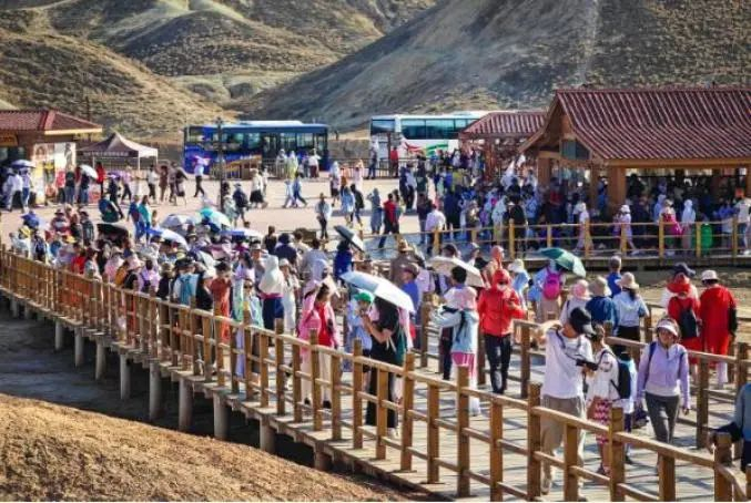 今年1-7月,张掖市接待游客2493.67万人次,较2022年同比增长136.53%,实现旅游综合收入130.1亿元,较2022年同比增长116.08%。其中七彩丹霞景区接待游客140.2万人次,同比增长436%。