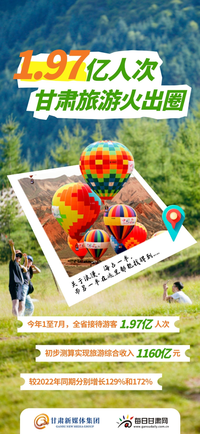 记者从甘肃省文化和旅游厅获悉,今年1至7月,全省接待游客1.97亿人次,初步测算实现旅游综合收入1160亿元。