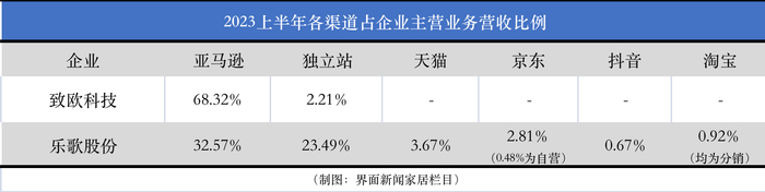 和致欧接近7成相比,亚马逊渠道仅占乐歌营收的3成