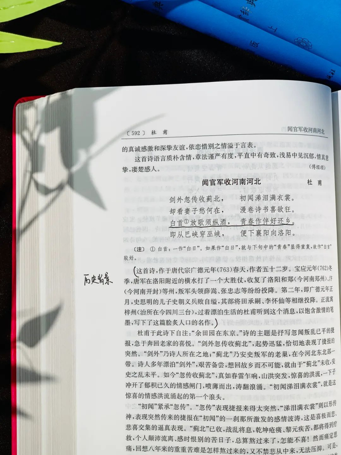 比如我们从小背到大杜甫的“白首放歌须纵酒,青春作伴好还乡。”