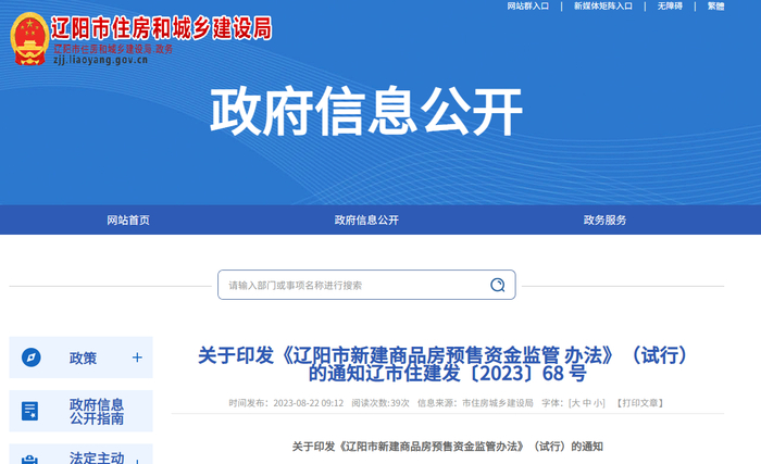 关于印发《辽阳市新建商品房预售资金监管 办法》(试行)的通知